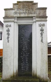 Auf dem Friedhof steht das Kriegerdenkmal in Form eines Tempeleinganges. An den Säulen rechts und links befinden sich die Jahreszahlen sowie ein mit Lorbeerast umranktes, nach unten zeigendes Schwert. In der Mitte befindet sich die Namenstafel aus Marmor.