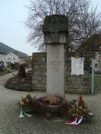 Auf dem Friedhof steht eine 1969 errichtete viereckige Steinsäule zur Erinnerung an die Gefallenen, Vermissten und Verstorbenen beider Weltkriege.