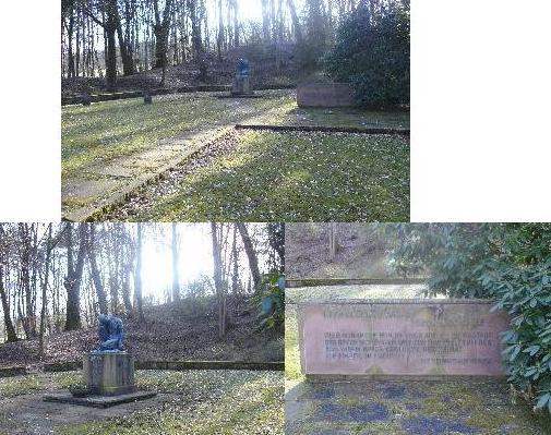 Erbach, Odenwaldkreis, HessenPLZ 64711 In einem Waldstück auf dem Schöllenberg oberhalb der Stadt, steht in der Mitte einer durch eine niedrige Bentonmauer eingesäumten Grünfläche ein Sandsteinquader mit der Statue eines nackten, knienden Mannes. Rechts davon ist eine Mauer mit Sandsteinplatte. Auf der Wiese stehen drei Sandsteinkreuze.
