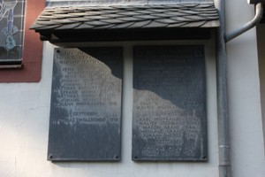zwei überdachte Gedenktafeln aussen an der Kirche