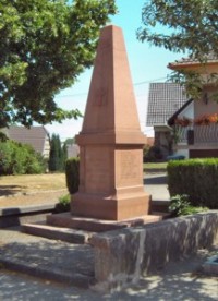 Denkmal aus rötlichem Naturstein in der Nähe der evgl. Friedenskirche. Über gestuftem Sockel ein vierseitiger Block mit Inschrift und Namen, darüber ein mit einem Kreuz geschmückter Pyramidenstumpf.
