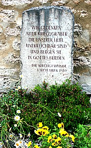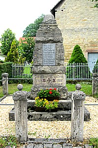 Vor der Kirche befindet sich eine Stele für die Gefallenen des 1. Weltkrieges. Rechts neben dem Kircheneingang steht ein Gedenkstein