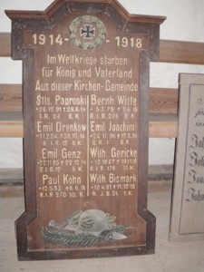 Tafel WK 1: „1914 – 1918. Im Weltkriege starben für König und Vaterland aus dieser Kirchen Gemeinde“