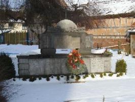 Neben dem Kindergarten/Schulhaus befindet sich ein Kriegerdenkmal aus Kalkstein. Auf einer Mauer aufgesetzt, steht ein Altar mit aufgeschlagenem Buch, darüber mehrere übereinanderliegende verschieden große Halbkreise, auf dem kleinsten eingearbeitet ein Stahlhelm mit Lorbeerzweig. Auf den Halbkreisen ein Metallkreuz. - Die Namenstafeln sind auf der Mauer angebracht.