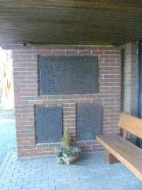 Im Eingangsbereich der Aussegnungshalle, befinden sich auf der linken Seite drei Metalltafeln.