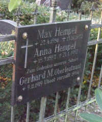 Zum Gedenken unseres Sohnes Gerhard M. Oberleutnant *9.11.1919 Uboot vermisst 1944; Familiengrab Max und Anna HEMPEL