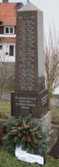 Wir gedenken in Ehrfurcht unseren Helden – die dankbare Gemeinde Wommen 1870/71: Unseren tapferen Kriegern von 1870/71 zum Gedächtnis gewidmet 1. WK: Getreu bis in den Tod! Unseren gefallenen Helden des Weltkrieges 1914 - 1918 zu Dank und Ehre! 2. WK: 1939 - 1945