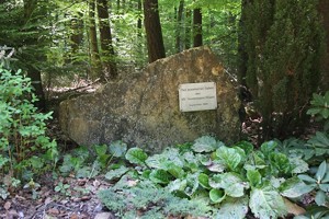 Etwa 200 Meter südlich von hier erinnern ein Gedenkstein an die Ermordeten und eine Informationstafel an den politischen Hintergrund des Verbrechens.
