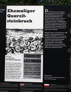 Zwischen dem 2. und 9. September 1942 wurden in diesem Steinbruch 20 Widerstandskämpfer aus Luxemburg erschossen, die den Generalstreik der Luxemburger Resistenzbewegung gegen die völkerrechtswidrige „Eindeutschung“ des besetzten Großherzogtums und insbesondere gegen die Zwangsrekrutierung in die Wehrmacht organisiert hatten.