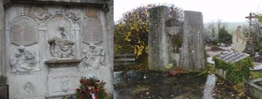 Auf dem Friedhof befindet sich ein Kriegerdenkmal für die Opfer des 2. Weltkrieges. Links zwei Steinsäulen mit Jahreszahlen, in der Mitte ein Stein mit einem Kreuz.
