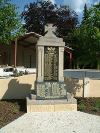 Freistehendes Denkmal im Ort; erbaut 1921. Die untere Platte wurde nach dem 2. Weltkrieg angebracht.