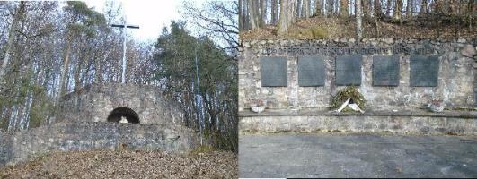 Das Ehrenmal befindet sich oberhalb des Dorfes. Auf einer Aussichtsplattform steht ein großes Metallkreuz. An der Einfassungsmauer gegen den Berg sind die Namenstafeln aus Metall angebracht. In Aufgang zur Plattform befindet sich eine Muttergottesfirgur in einer Nische.