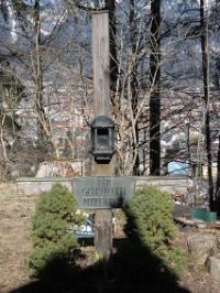 im Stadtteil Amras, im Soldatenfriedhof „Tummelplatz“; Holzkreuz mit Gedenktafel