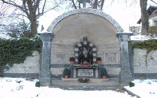 An der Kreuzung Kapellenstrasse - Frankenstrasse steht eine offene Marienkapelle in Form einer Kuppel, die von zwei Säulen getragen wird. In der Mitte eine betende Marienstatue auf einem Altar. Daneben an den Wänden eingesetzte Steintafeln.