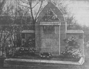 Das Denkmal wurde zu Ehren der Deutschen errichtet, die bei den tschechischen Ausschreitungen nach Zusammenbruch des Kaiserreichs Österreich-Ungarn in Karlsbad getötet wurden.