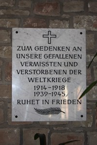 Zum Gedenken an unsere Gefallenen und Vermissten und Verstorbenen der Weltkriege1914 - 19181939 - 1945Ruhet in Frieden