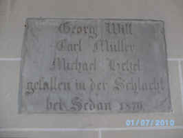 Kronach (1870/71), Landkreis Kronach, Oberfranken, BayernPLZ 96317 Gedenktafel in der Stadtpfarrkirche St. Johannes mit den Namen der Kriegsopfer.