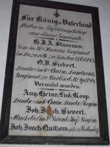Tafel 1815: „Für König und Vaterland starben im Befreiungskriege aus dieser Gemeinde“
