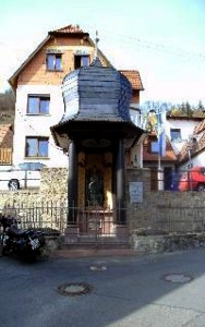 In der Ortsmitte/Rathausstrasse befindet sich eine offene Kapelle. Eine von vier Säulen getragene einem Kirchturm ähnliche Überdachung. Ein Sandsteinaltar auf dem sich ein kniender Soldat und dahinter ein Engel befinden. Darüber sowie neben den Figuren sind die Namenstafeln aus Holz angebracht.