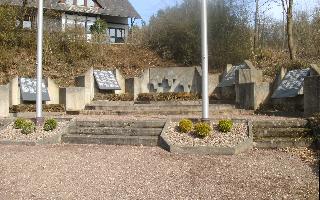 Im oberen Teil des Friedhofes befindet sich das Ehrenmal. In der Mitte einer, ein Dreieck andeutenden, Betonwand sind drei Betonkreuze angebracht. Links und rechts davon sind in Aussparungen, darin befestigt die Namenstafeln aus Marmor.