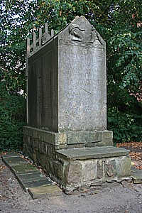 Stele; Die Namentafeln mit weiteren Gefallenen sind infolge Gesteinsverwitterung nicht mehr zu lesen