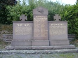 An der Ortsdurchfahrt vor der evang. Kirche steht das Kriegerdenkmal. Drei zusammenstehende Sandsteinplatten. Die mittlere mit einem herausgearbeiteten Stahlhelm mit Eichenlaub unterlegt. Auf den beiden äusseren Platten befinden sich Kreuze.