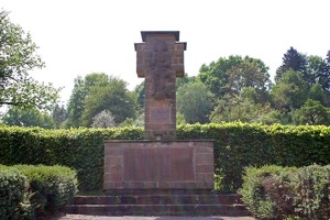 bei der Kirche; in Form eines Altars, oben mit gemauertem Kreuz und Steinrelief; zusätzlich Hinweise zu Soldaten von privaten Gedenksteinen