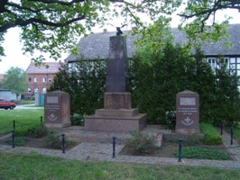 Wiederhergestelltes Denkmal in der Ortsmitte. Die noch erhaltenen Teile mit den Namen der Kriegstoten des Ersten Weltkrieges sind stark beschädigt; daher sind zirka 15 Namen nicht mehr entzifferbar. Eine Tafel erinnert an einen Gefallenen des Krieges 1870 / 71 und einen Gefallenen aus den napoleonischen Kriegen.