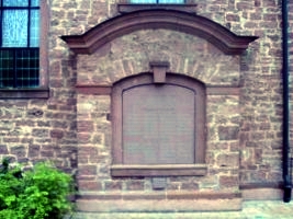 An der Kirche Hl. Sebastian befindet sich an der linken Längsseite ein überdachter Vorsprung in dem eine Gedenktafel aus Sandstein eingefügt ist.