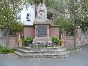 In der Kreuzung Hauptstraße/Bahnhofsstraße steht das Kriegerdenkmal. Eine Sandsteinsäule mit an den Ecken herausgearbeiteten Säulen. In der Mitte eine Namenstafel aus Metall. Oben ein Engel, der über einen sterbenden Soldaten wacht. Links und rechts an die Sandsteinsäule angefügt zwei Namensplatten aus Sandstein.