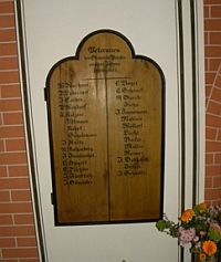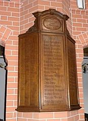 An Mauervorsprüngen in der Nikolai-Kirche zwei dreiteilige hölzerne Gedenktafeln mit den Namen der 87 Kriegstoten des Ersten Weltkrieges. Außerdem eine Holztafel mit 29 Namen von Teilnehmern an den Befreiungskriegen.