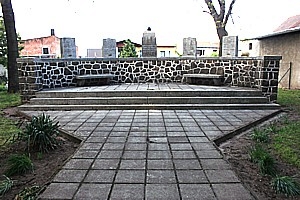 Halbrunde Gedenkstätte mit aufgesetzen Namensteinen