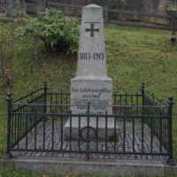 Unterhalb des Friedhofszuganges, direkt an der Straße steht ein Obelisk auf einem Steinwürfel. Dieser Würfel trägt die Namen der Gefallenen von 1870/71. Auf dem Friedhof, gleich rechts neben dem Eingang, steht ein großer unregelmäßiger Steinblock. An ihm ist eine Metallplatte mit den Namen der Gefallenen angebracht. Die Toten des 2.WK´s ruhen ein Stück weiter. In einem kleinen Areal sind 15 Granitblöcke in den Boden eigelassen, auf denen die Namen stehen. Weiter im Inneren des Friedhofs steht eine Granitstele, die die Namen von Toten des 24. Und 24. April 1945 trägt.