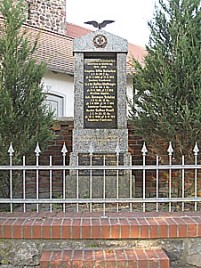 Befreiungkriege: Anlässlich des 100. Jahrestages der Befreiungskriege wurde ein Findling als Gedenkstein aufgestellt. Wie seinerzeit oft üblich dazu eine Eiche gepflanzt Weltkriege: Große Stele neben der Kirche mit einem Adler obenauf.