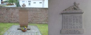 Hinter der Wallfahrtskirche Mariä Geburt befindet sich ein Gedenkstein aus Sandstein mit einem deutschen Kreuz als Abschluss. In der Kirche links befindet sich an der Wand eine Gedenktafel aus Stein mit einer Jesusfigur und Kreuz.