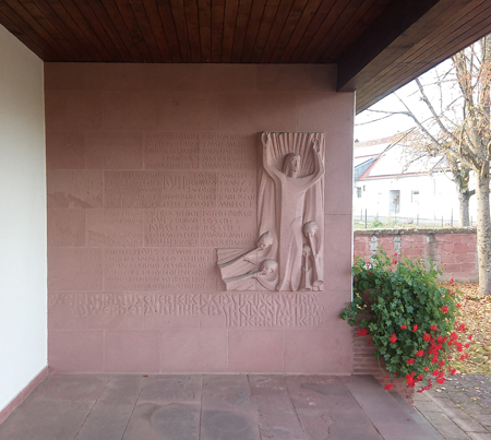 An einer der Wände der Aussegnungshalle befindet sich das Kriegerdenkmal.
