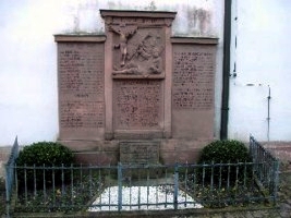 An der Seite der Kriche Mariä Himmelfahrt befindet sich das Kriegerdenkmal. Bestehend aus drei an die Aussenwand der Kirche angebrachten Sandsteinplatten. Die mittlere bestitz ein Relief: Links Christus am Kreuz, rechts darunter ein liegender Soldat der eine Fahne in die Höhe hält. Davor eine kleine Gedenkplatte.