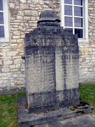 An der Seite der Kirche von Bruchmachtersen das Ehrenmal für die 19 Kriegstoten des Ersten Weltkrieges. Den oberen Abschluß bildet die Plastik eines Stahlhelmes, der auf einem Eichenkranz ruht.
