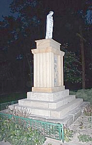 Sellin (poln. Zielin), Stadt Bärwalde in der Neumark, Neumark/OstbrandenburgDieses Denkmal ist ein Beispiel für das Umwidmen einstiger Kriegerdenkmale in Polen. Oft sind sämtliche Inschriften und Symbole entfernt. In diesem Fall wurde das Denkmal durch eine Marienfigur ergänzt. Dass es sich um ein früheres Kriegerdenkmal handelt ist an dem auf der Rückseite noch sichtbarem Schwarzen Kreuz erkennbar.