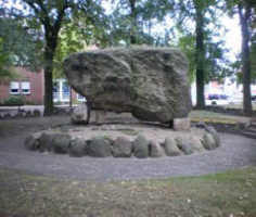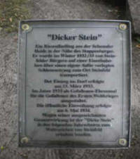 „Dicker Stein“ Ein Riesenfindling aus der Schemder Heide in der Nähe des Stappenberges. Er wurde im Winter 1932/33 von Steinfelder Bürgern auf einer Eisenbahnlore über einen eigens dafür verlegten Schienenstrang zum Ort Steinfeld transportiert. Der Einzug ins Dorf erfolgte am 13. März 1933. Im Jahre 1933 als Gefallenen-Ehrenmal für die Gefallenen des Ersten Weltkrieges ausgestaltet. Die öffentliche Einweihung erfolgte am 6. Mai 1934. Wegen seiner ausgezeichneten Gesamtwirkung ist der „Dicke Stein“ in den folgenden Jahrzehnten zum Wahrzeichen von Steinfeld erhoben worden.