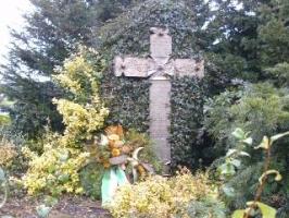 Rechts vor der Kirche steht ein reichlich verziertes Metallkreuz.