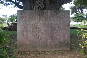 Hier ruhen sechzehn deutsche Helden an der Stelle, wo sie am 4. November 1914 für die Grösse des Vaterlandes fielen, achtundvierzig brave Askaris und Kompagnieträger folgten ihren deutschen Führern in treuer Erfüllung ihrer Soldatenpflicht in den Tod, auch sie starben für Kaiser und Reich.