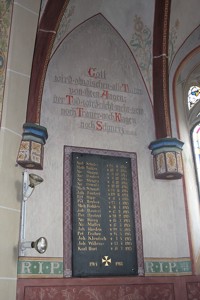zwei Gedenktafel in der Kirche; zusätzlich Hinweise zu Soldaten von privaten Gedenksteinen