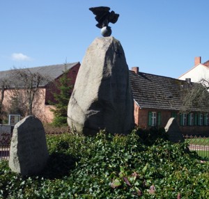 Steindenkmal aus 3 Findlingen, gekrönt von einem Adler