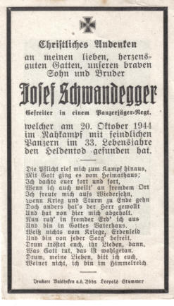 33. Jahre. Im Nahkampf mit feindlichen Panzern den Heldentod gefunden hat. |