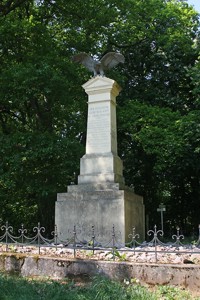auf einem Höhenrücken ca. 500m von den Tennisplätzen entfernt, Säule oben mit Adler, Inschriften an allen Seiten