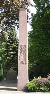 bei der Kirche; 1. Denkmal oben mit Steinplastik, vorne Inschriften (1. Weltkrieg) 2. hohe rechteckige Säule, Steinreliefs und Inschriften an den Seiten (2. Weltkrieg) 3. Hinweise zu Soldaten von privaten Gedenksteinen