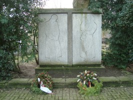 Das alte Kriegerdenkmal der Gemeinde wurde aufgrund der Verbreiterung der Bundesstraße B 70 abgebrochen. Die Gemeinde Obrighoven-Lackhausen errichtete auf Anregung von Frau Schönborn aus Spenden der Bevölkerung neben der evangelischen Lauerhaas-Kirche an der Birkenstraße ein neues Denkmal. Dieses besteht aus zwei Steinplatten mit der Figur einer Mutter mit Kind und der Figur eines Soldaten. Das am 26.Juni 1955 enthüllte Denkmal wurde von der Weseler Künstlerin Eva Brinkmann geschaffen. Ein seinerzeit auf beiden Tafeln angebrachter Text ist zum Teil verwittert und nur noch in Teilen lesbar.