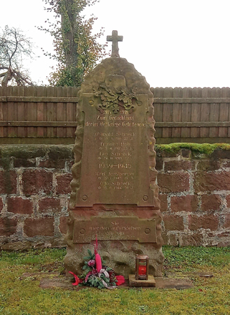 Auf dem Ortsfriedhof befindet sich der Gedenkstein aus Sandstein.