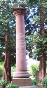 Rückseite der Säule: Im Kampfe für das Vaterland verwundet von der Liebe ihrer Mitbürger gepflegt durch den Todt zum ewigen Frieden eingegangen ruhen hier: (Namen)